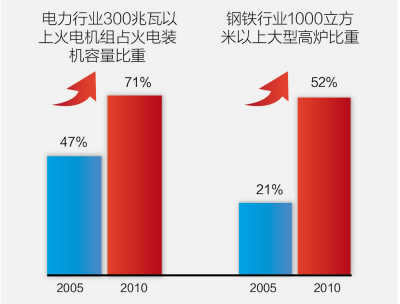 2006年至2010年,污染减排工作充分发挥倒逼机制作用,各地纷纷采取“上大压小、减量置换、限期淘汰”等措施,促使能耗大、排放量高的企业退出市场。
